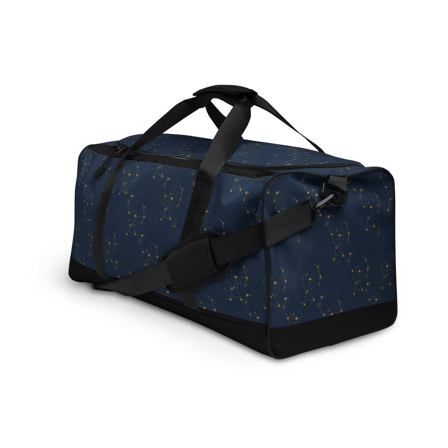 Bring the cosmos along for every adventure with our Constellation duffle bag. With a deep blue base adorned with shimmering gold constellations, it’s as beautiful as it is functional.