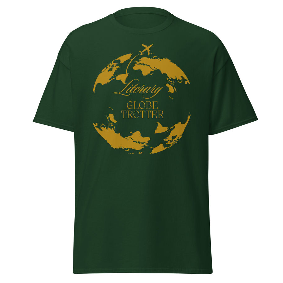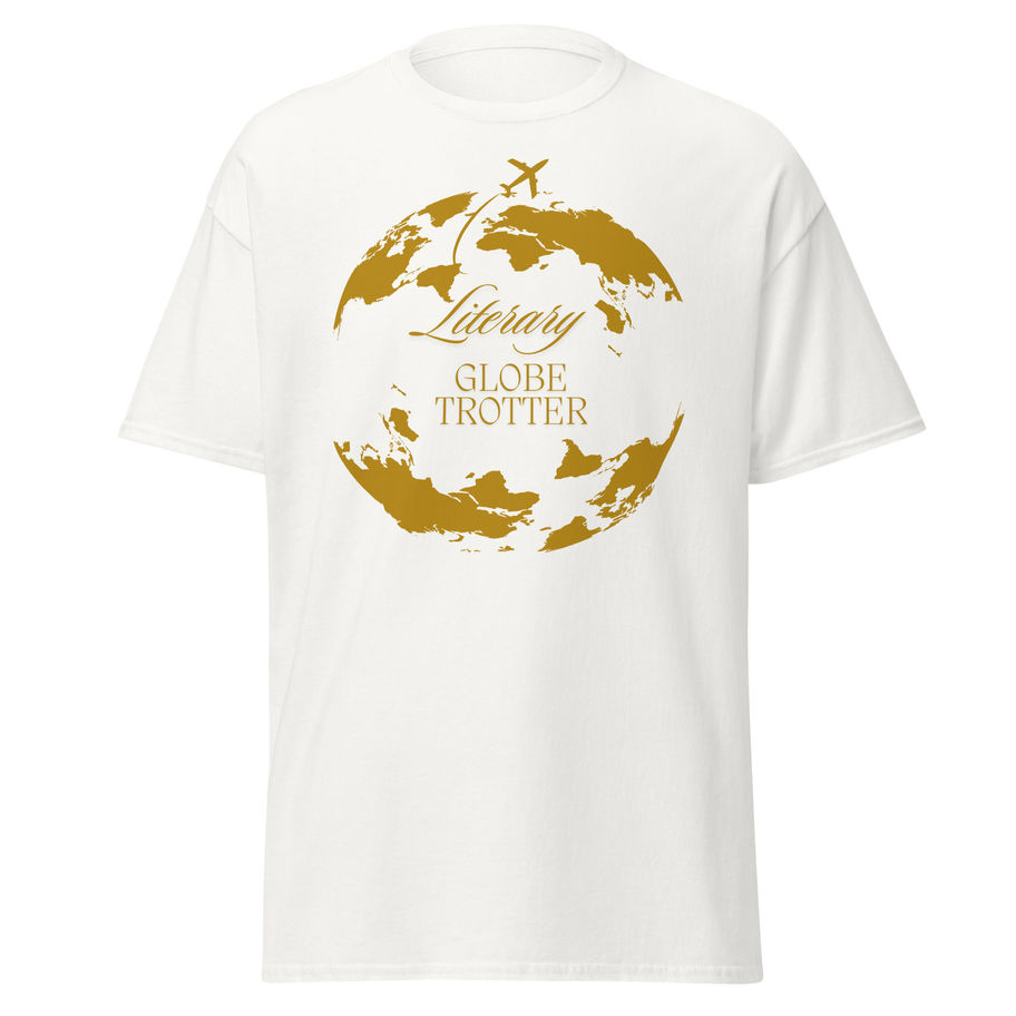 With a bold golden globe and elegant cursive “Globe Trotter” lettering, this statement tee offers a structured, long-lasting fit that keeps its shape through repeated washes, making it perfect for layering or loungewear.