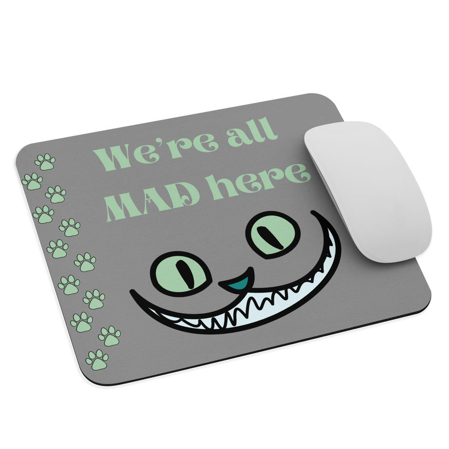 Bring a touch of mischief to your workspace with our Mad Here mousepad.